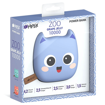 Аккумулятор HIPER Внешний аккумулятор HIPER ZOO GRAPE JELLY Li-Pol 10000mAh 2.4A+1.5A 2xUSB, синий