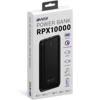 Аккумулятор HIPER Внешний аккумулятор HIPER RPX10000 Li-Pol 10000 mAh QC 3A+2.4A 2xUSB 1xType-C черн
