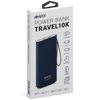 Аккумулятор HIPER Внешний аккумулятор HIPER TRAVEL 10K Li-Pol 10000 mAh Soft-touch 3A+3A 2xUSB 1xTyp