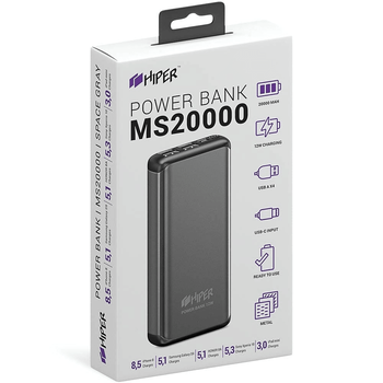 Аккумулятор HIPER Внешний аккумулятор HIPER MS20000 Li-Pol 20000 mAh Aluminum 3A+2.4A 4xUSB 1xType-C