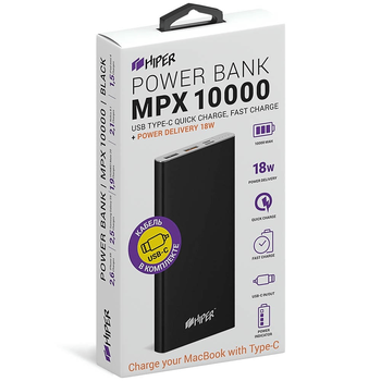 Аккумулятор HIPER Внешний аккумулятор HIPER MPX10000 Li-Pol 10000mAh 3A+3A+2.4A 2xUSB 1xType-C черны