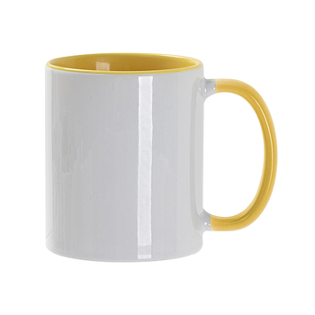 Кружка для сублимации, 330 мл, d=82 мм, стандарт А, белая, желтая внутри, желтая ручка
