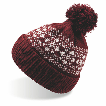 Шапка вязаная с снежинками и помпоном "FLAKE"_бордо, 100% акрил