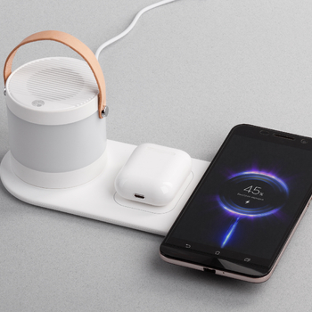 Bluetooth колонка-подставка "Smart Loud" с беспроводным (10W) зарядным устройством, лампой и подсветкой логотипа