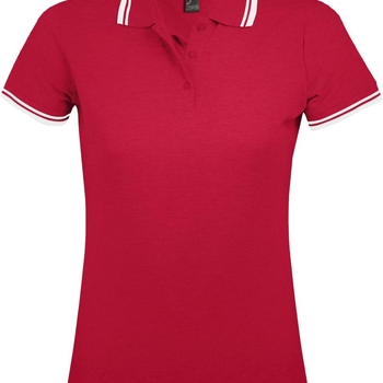 Рубашка поло женская Pasadena Women 200 с контрастной отделкой, красная с белым