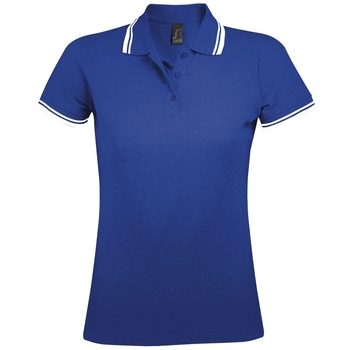 Рубашка поло женская Pasadena Women 200 с контрастной отделкой, ярко-синяя с белым