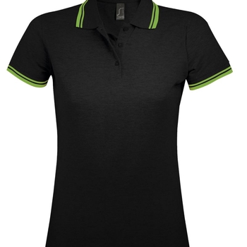 Рубашка поло женская Pasadena Women 200 с контрастной отделкой, черная с зеленым