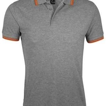 Рубашка поло мужская Pasadena Men 200 с контрастной отделкой, серый меланж c оранжевым