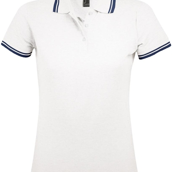 Рубашка поло женская Pasadena Women 200 с контрастной отделкой, белая с синим