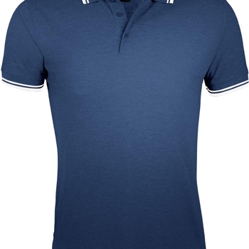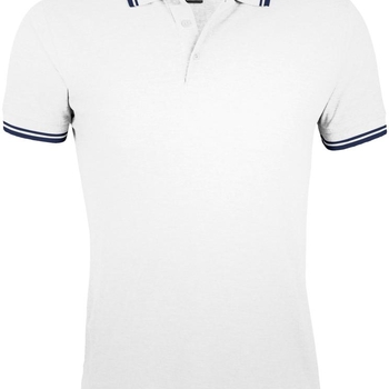Рубашка поло мужская Pasadena Men 200 с контрастной отделкой, белая с синим