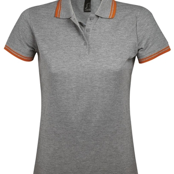 Рубашка поло женская Pasadena Women 200 с контрастной отделкой, серый меланж c оранжевым