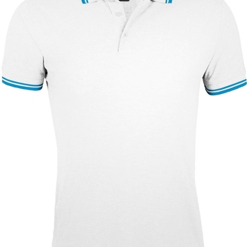 Рубашка поло мужская Pasadena Men 200 с контрастной отделкой, белая с голубым