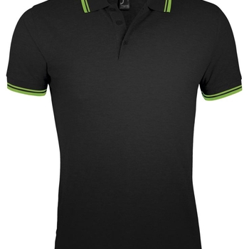 Рубашка поло мужская Pasadena Men 200 с контрастной отделкой, черная с зеленым