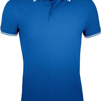 Рубашка поло мужская Pasadena Men 200 с контрастной отделкой, ярко-синяя с белым