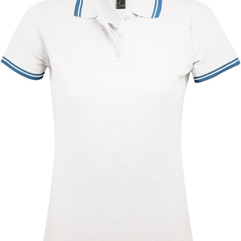 Рубашка поло женская Pasadena Women 200 с контрастной отделкой, белая с голубым