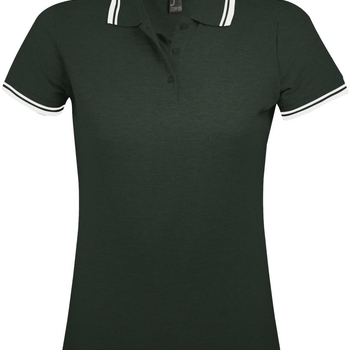 Рубашка поло женская Pasadena Women 200 с контрастной отделкой, зеленая с белым