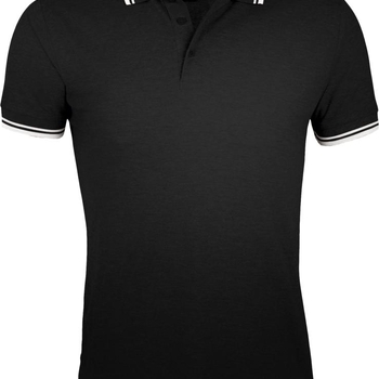 Рубашка поло мужская Pasadena Men 200 с контрастной отделкой, черная с белым