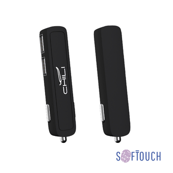 Автомобильное зарядное устройство "Slam" с 2-мя разъёмами USB, покрытие soft touch